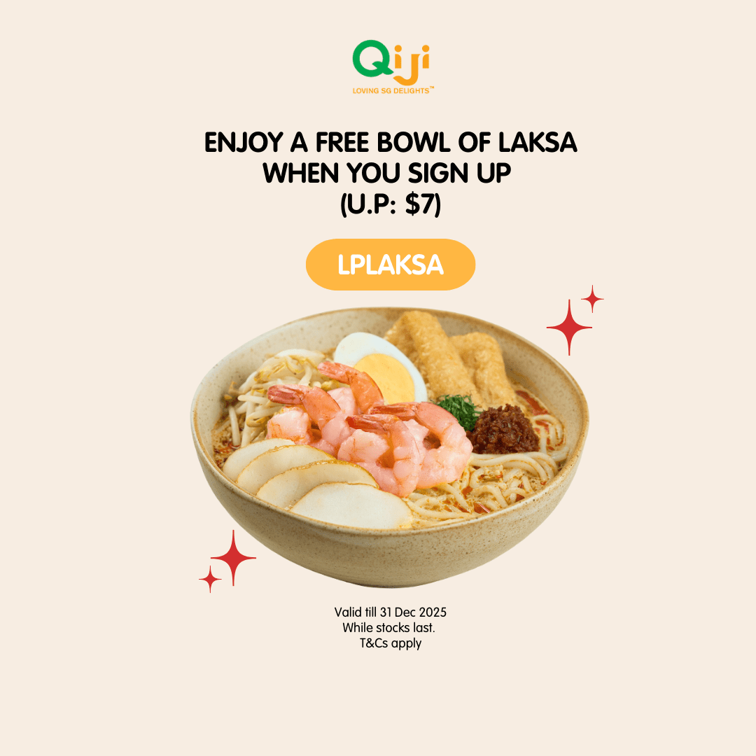 Enjoy a free bowl of Laksa (U.P: $7) when you sign up with promo code LPLAKSA