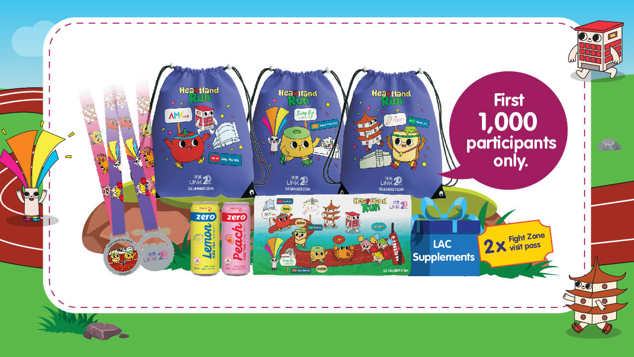 The race goodie bag includes the following items: 1 x Sports Towel, 1 x Pokka Can Drink (either Lemon or Peach Flavour), 2 x Fight Zone Visit Pass, 1 x LAC Sachet.