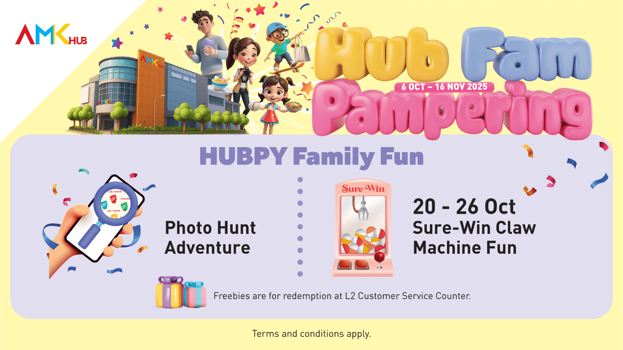 Spend $60/$120 (Supermarket receipt) in a single receipt and earn a game chance at our Level 2 Customer Service Counter Sure-Win Claw Machine! Walk away with an exclusive HUBPY Family Blanket!