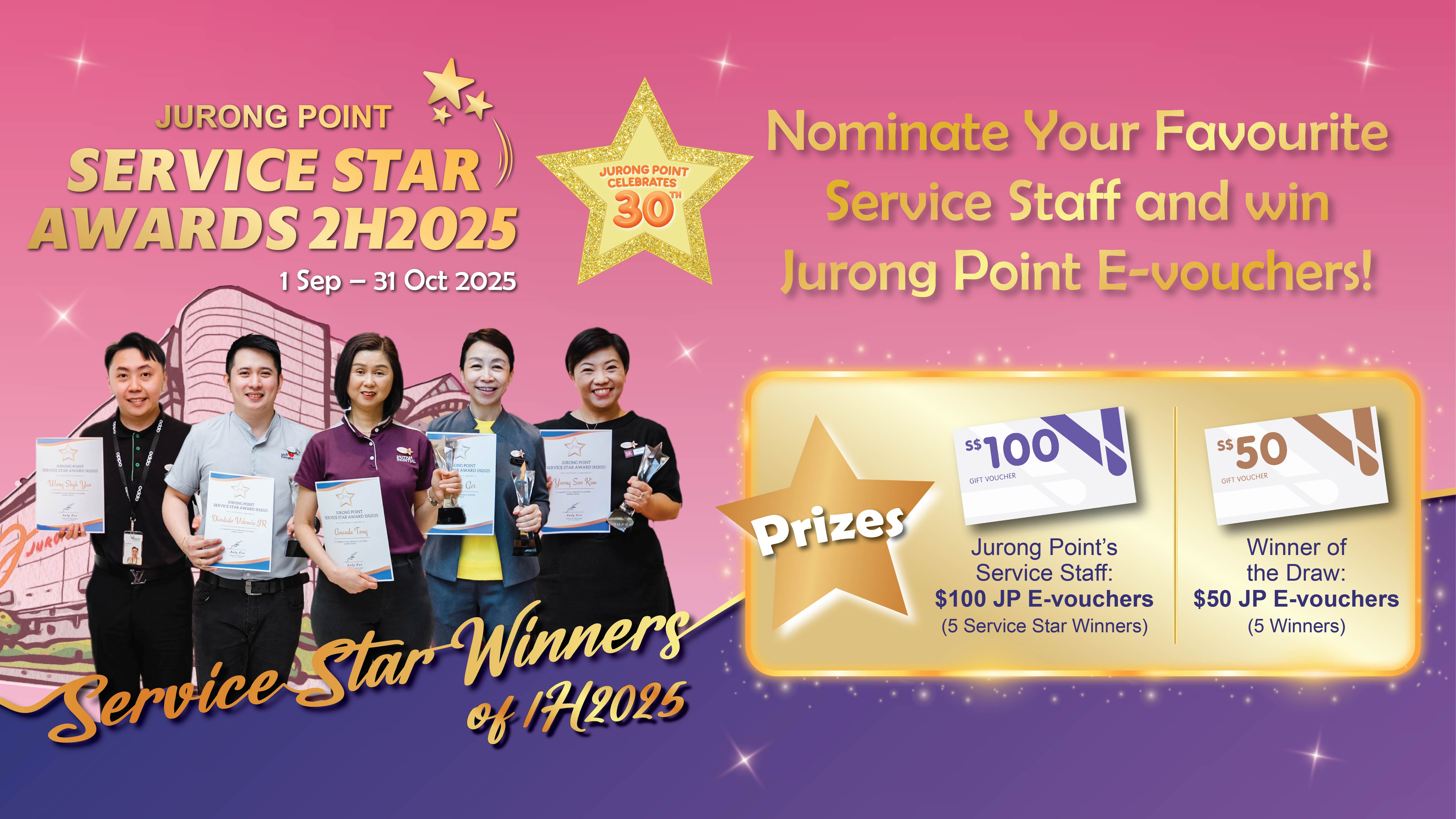 Submit your nomination now and stand a chance to win in our Jurong Point Service Star Draw!