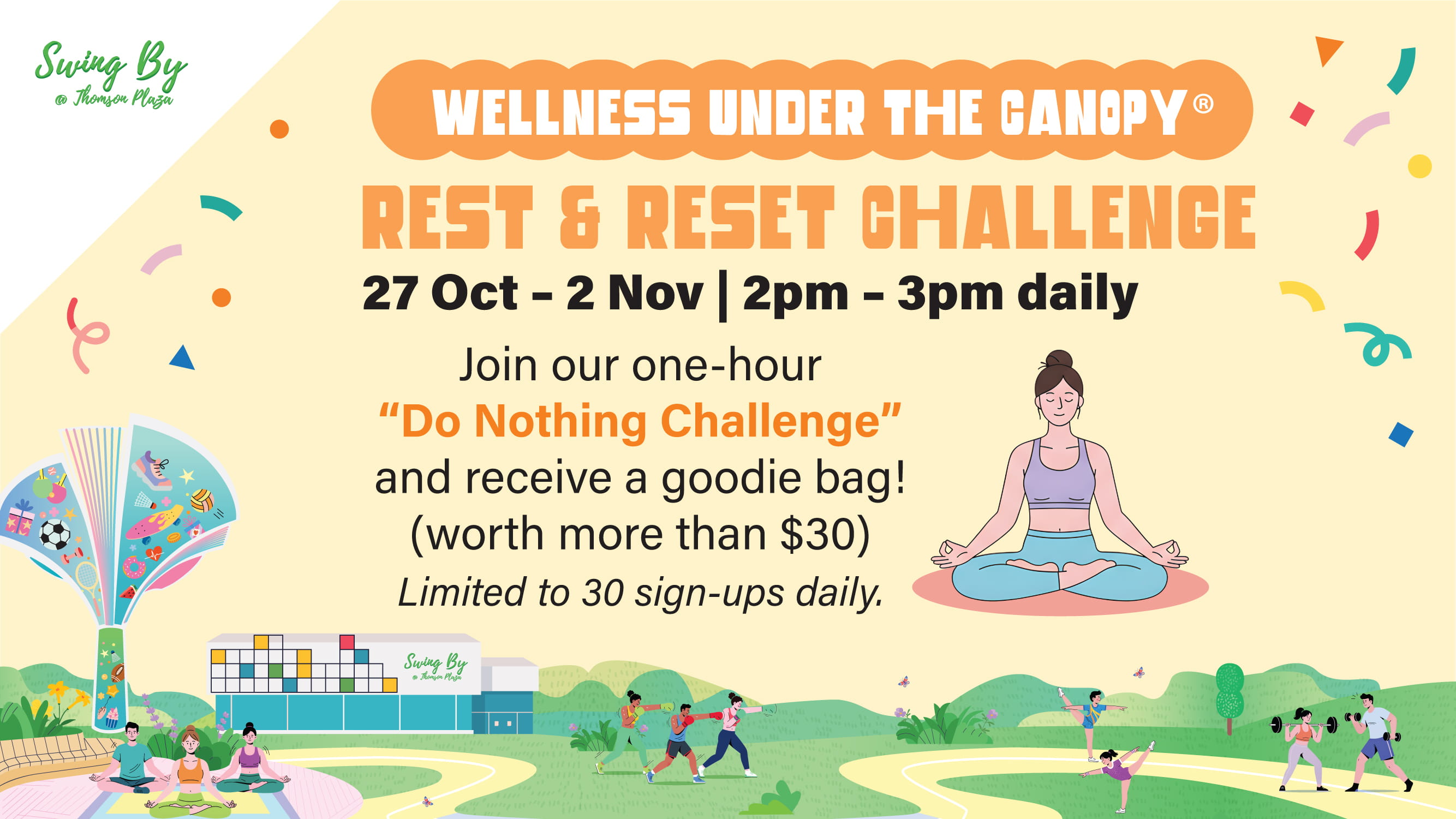 Take a break and join our Rest & Reset Challenge! Simply relax and walk away with a goodie bag worth more than $30.